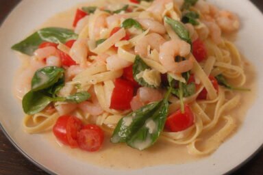 Brie Cheese Pasta with Prawn