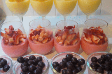 A light, guilt-free version of panna cotta with protein, only about 50 calories each. Works great as a light dessert, high-tea snack, or even post-workout treat. Customize your own Panna Cotta with your favourite fruits!
