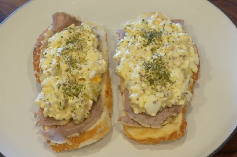 I recommend having it with toast and ham or roast beef. Personally, I loved it with roast beef since it’s more flavourful.