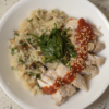 • When tracking calories, I calculated the chicken as 1.3 kg of meat without bones: 100 g chicken skin + 1200 g chicken thigh meat (bone weight approx. 300 g).