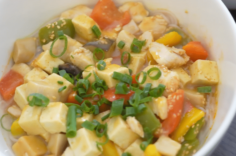 - Optional: chopped spring onion, sesame seeds, tofu noodles